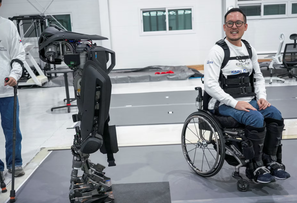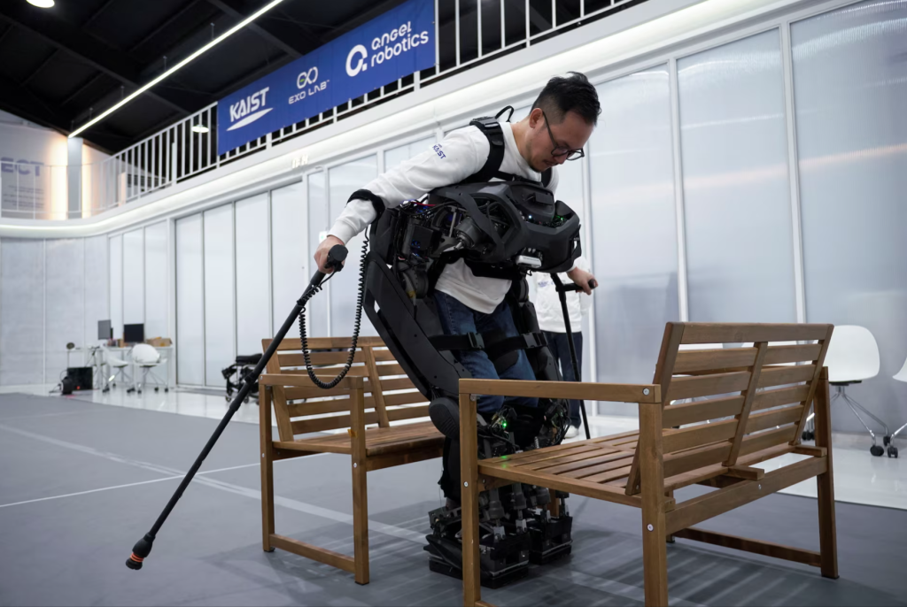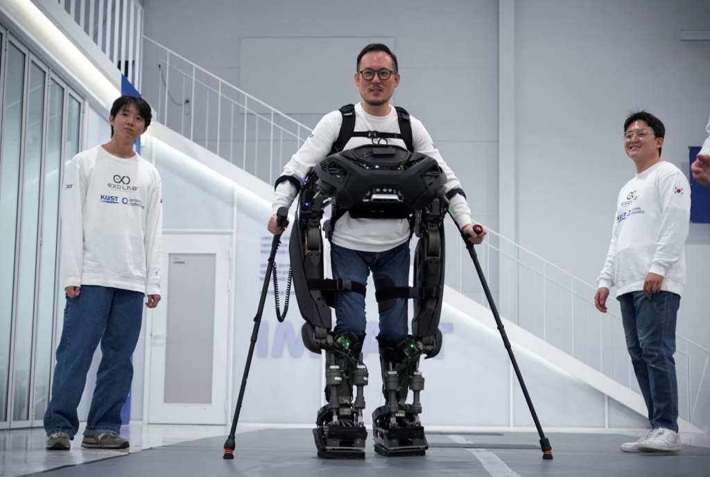 Портативний екзоскелет WalkON Suit F1 створили в KAIST. Він допомагає людям із паралічем ходити, долати перешкоди та навіть підійматися сходами.