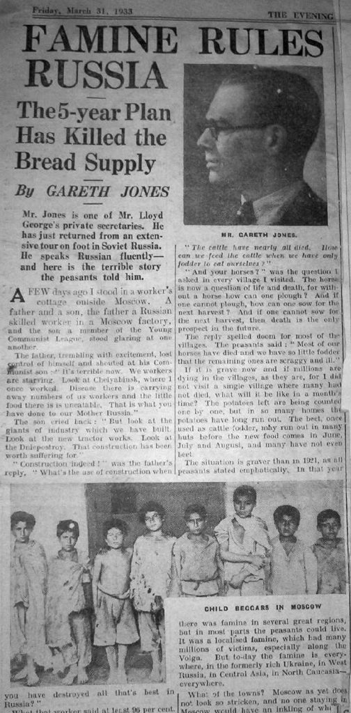 Джонс Ґ. «Голод править Росією» («Famine Rules Russia») [Електронний ресурс] // Gareth Jones. – 1933. – 31 берез. – Режим доступу: https://www.garethjones.org/overview/article33-12.htm (дата звернення: 02.04.2026).
