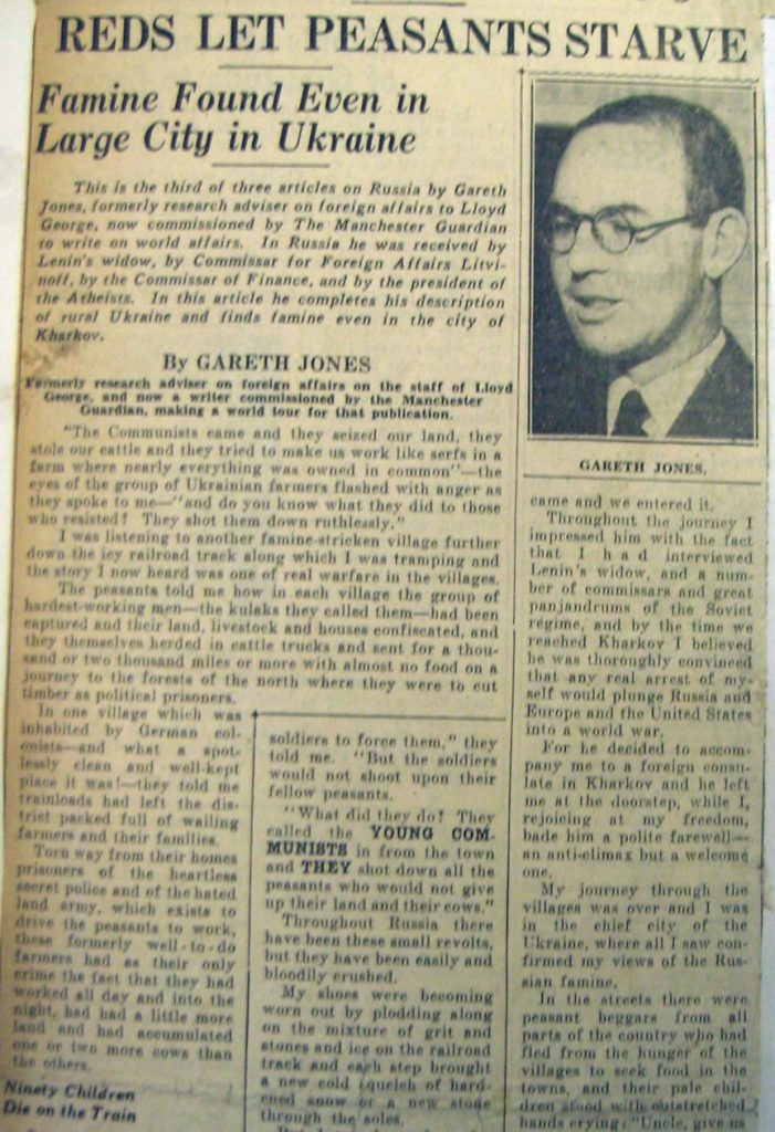 Це третя з трьох статей про Росію авторства Ґарета Джонса, колишнього радника з питань зовнішньої політики у Ллойда Джорджа, нині уповноваженого газетою Manchester Guardian писати про світові справи. У Росії його приймали вдова Леніна, народний комісар закордонних справ Литвинов, народний комісар фінансів, а також президент організації атеїстів. У цій статті він завершує свій опис сільської України та виявляє голод навіть у місті Харкові.