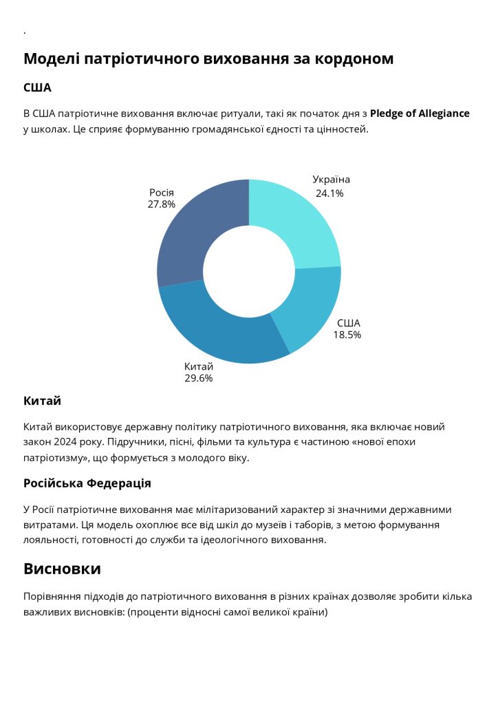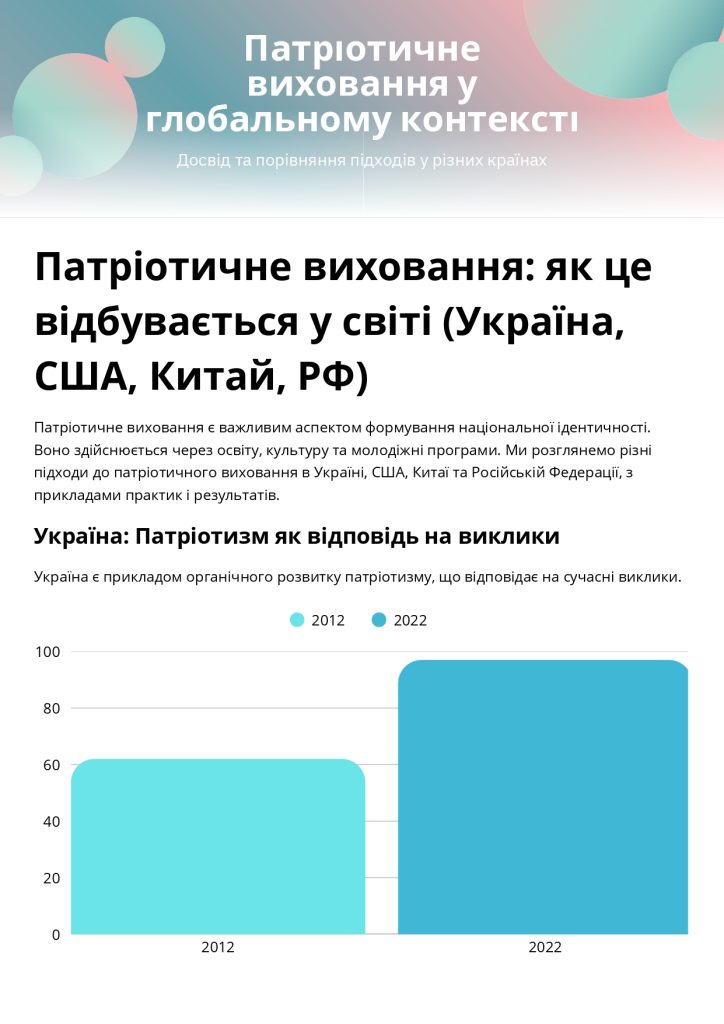 Національно-патріотичне виховання є стратегічним пріоритетом у багатьох державах світу, які прагнуть зміцнити свою національну ідентичність та суверенітет.